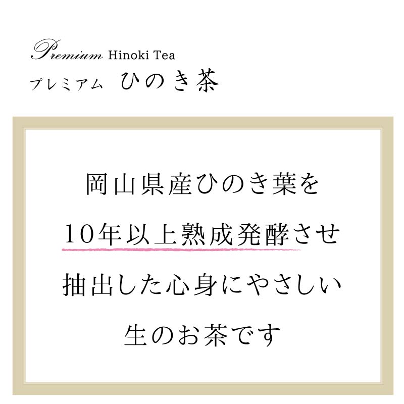 | 品名: | プレミアム ひのき茶 (10年熟成)[濃縮飲料] |