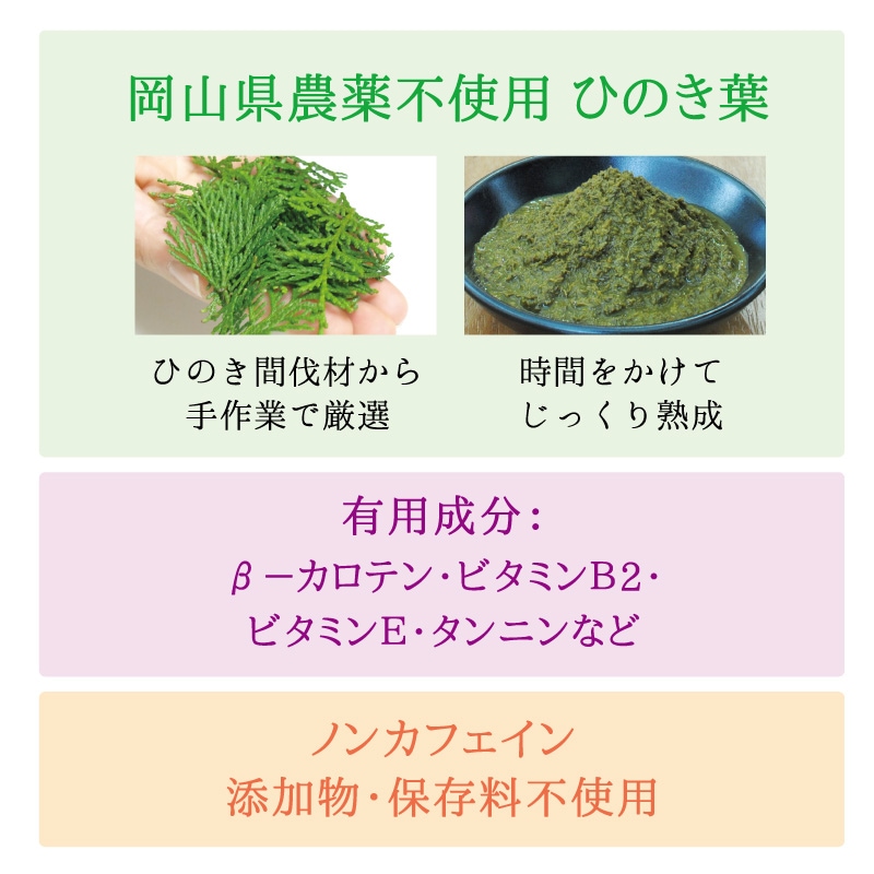 | 原料: | ひのき葉(岡山県産) |