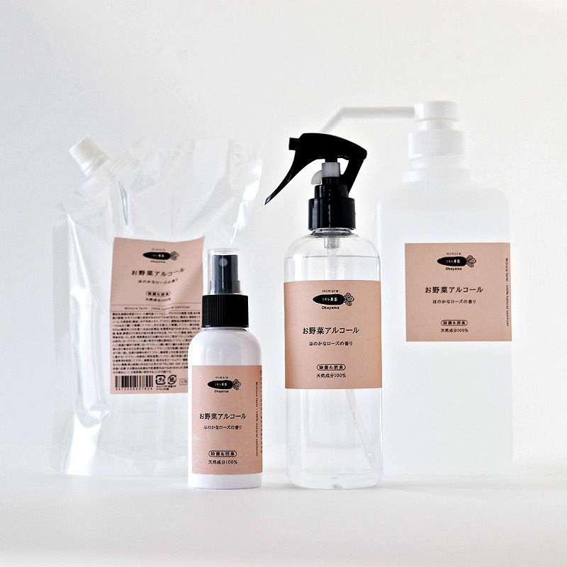 その後、「おうち時間をより快適に、さらにより良いものを。」との思いから、天然精油のほのかな香りや消臭成分をプラスした、家庭で使える除菌剤「お野菜アルコール」を開発することとなりました。