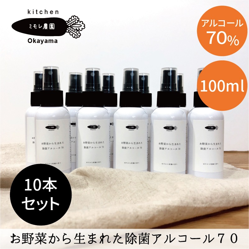 ミモレ農園では創業した1985年以来、「体へのやさしさ」「無農薬」「環境保護」を重視し、岡山の大自然の中で、丁寧に作った野菜や食品をお届けしてきました。 昨年からは、「ミモレ農園セレクト」というプロジェクトを立ち上げ、耕作放棄地予防と高齢化する農業者の方と栽培から関わり、地球や環境、人にやさしいサステナブルな取り組みに挑戦しています。 また、新型コロナウイルスの拡大により、「予防」や「免疫力アップ」をテーマに、安心感のある心地よい生活を送るお手伝いをしたいと考えました。 そこで、私たちの基本理念である「お野菜をいっぱいに」というコンセプトのもと、天然成分100%の除菌アルコールをご提案します。 |